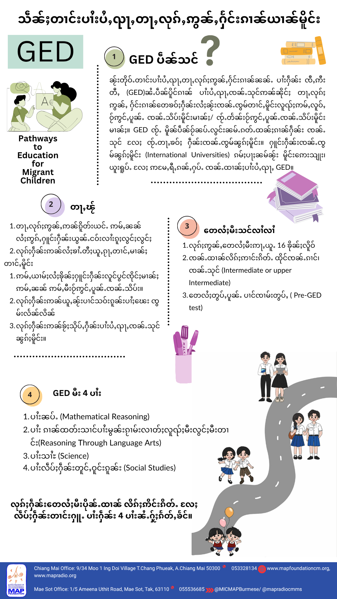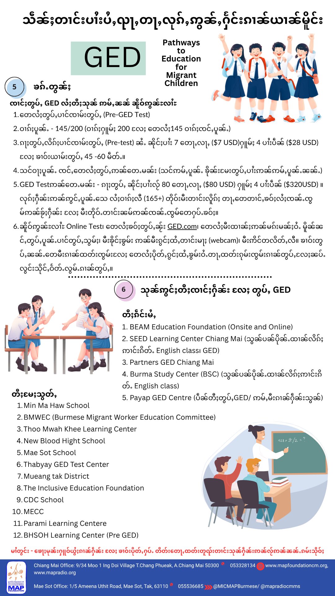 5. Payap GED Centre (ပဵၼ်တီႈတွပ်ႇGED/ ဢမ်ႇမီးၵၢၼ်ႁဵၼ်းသွၼ်)